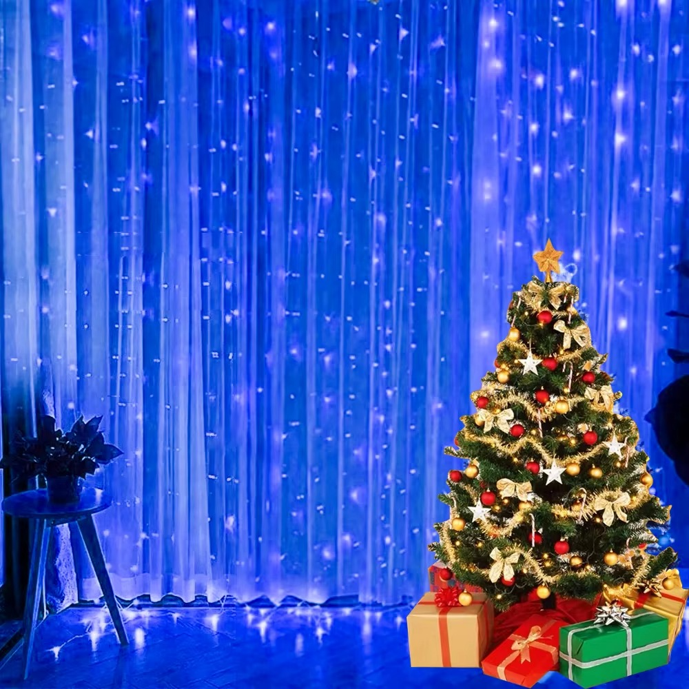 Perdea de Lumină LED 3x3m – 300 LED-uri, 8 Moduri de Iluminare - Albastru